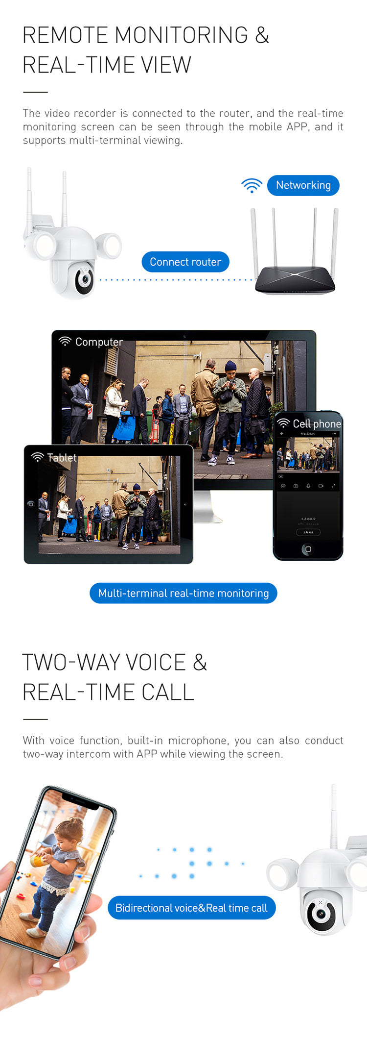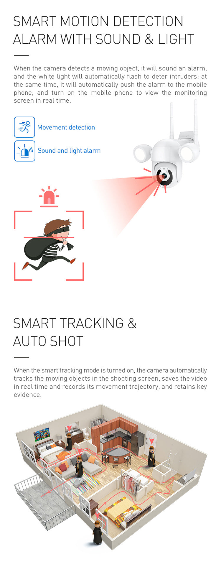 3MP PIR WiFi + RJ45 Surveillance Outdoor Camera with PTZ, Night Vision, Motion Detection, 2-way Audio with 2 lights