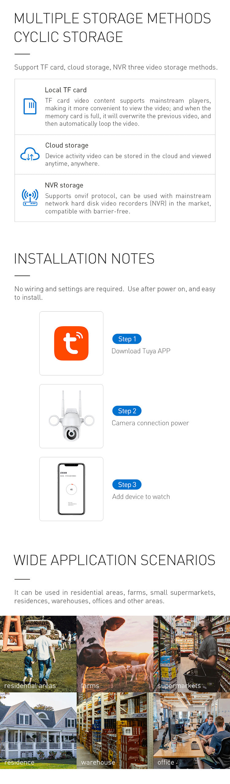 - Pan & Tilt Angle: pan 320°, tilt 90°